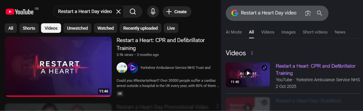 We executed a burst of content—spanning the period before, during, and after the event. The specific strategy was to heavily post in the days leading up to the event to saturate search results. This ensured that when students, teachers, or the general public searched for “Restart a Heart Day” content, the new YAS training video consistently appeared in suggested content and top organic results.